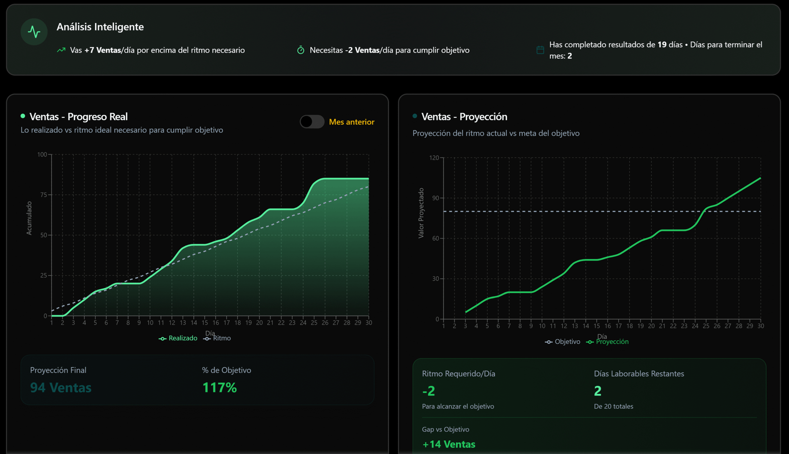 Fija metas mensuales con claridad y seguimiento automatizado.